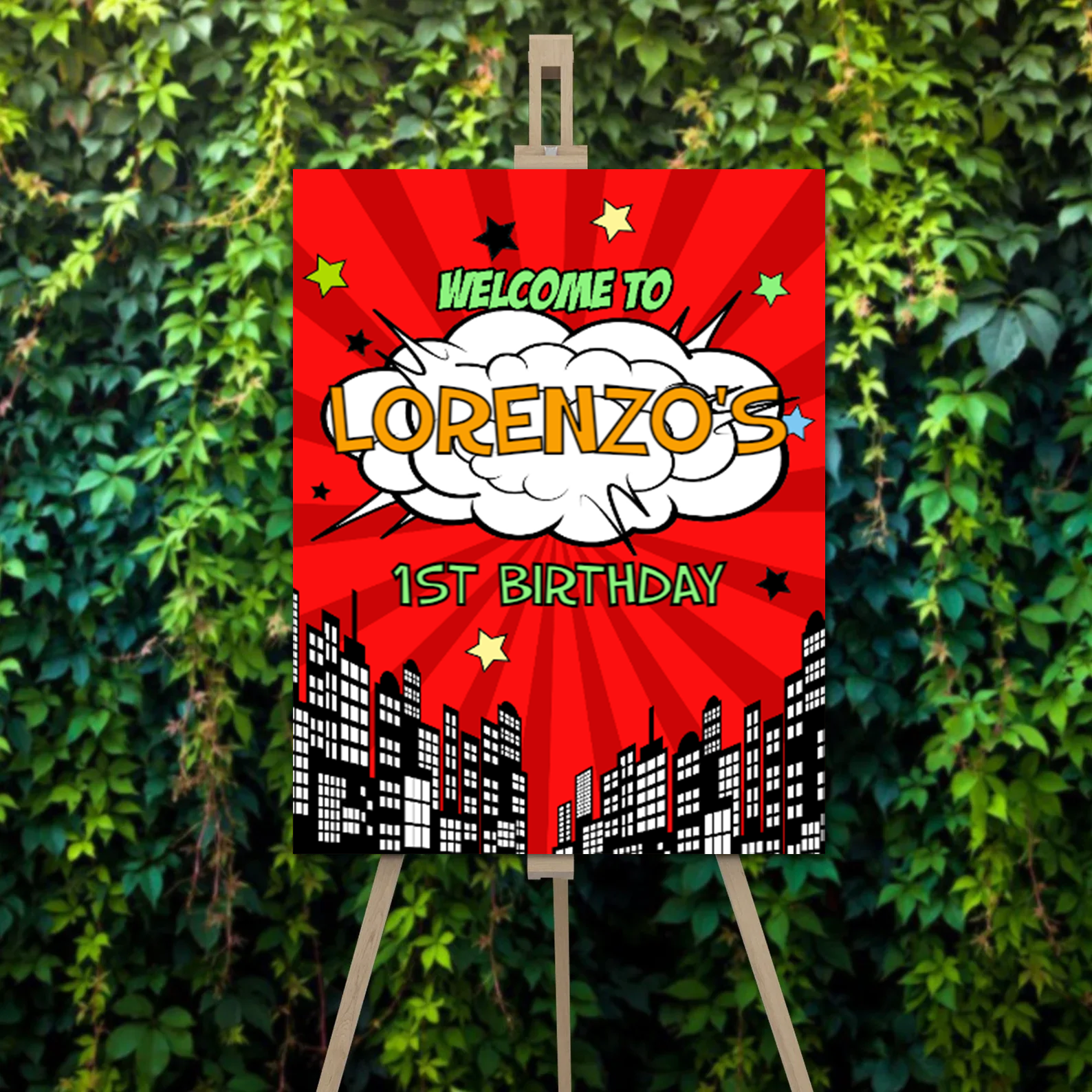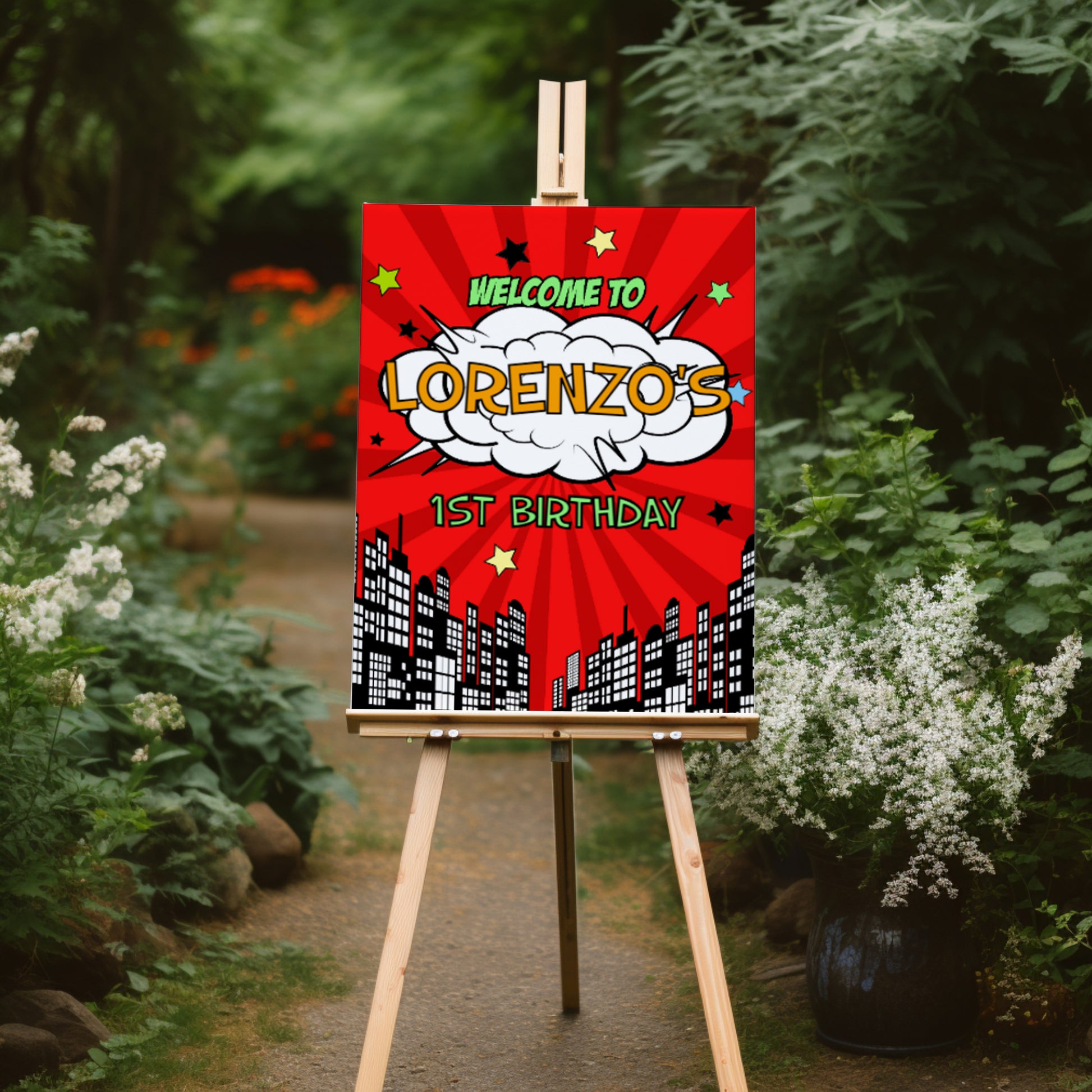 Whether it’s for kids, teens, or adults — this design keeps it cheerful and clean. You don’t need balloons and backdrops when one sign can say it all.